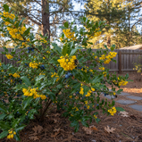 Oregon Grape (Mahonia aquifolium) – Evergreen leaves, yellow blooms in spring, and purple berries that birds adore.